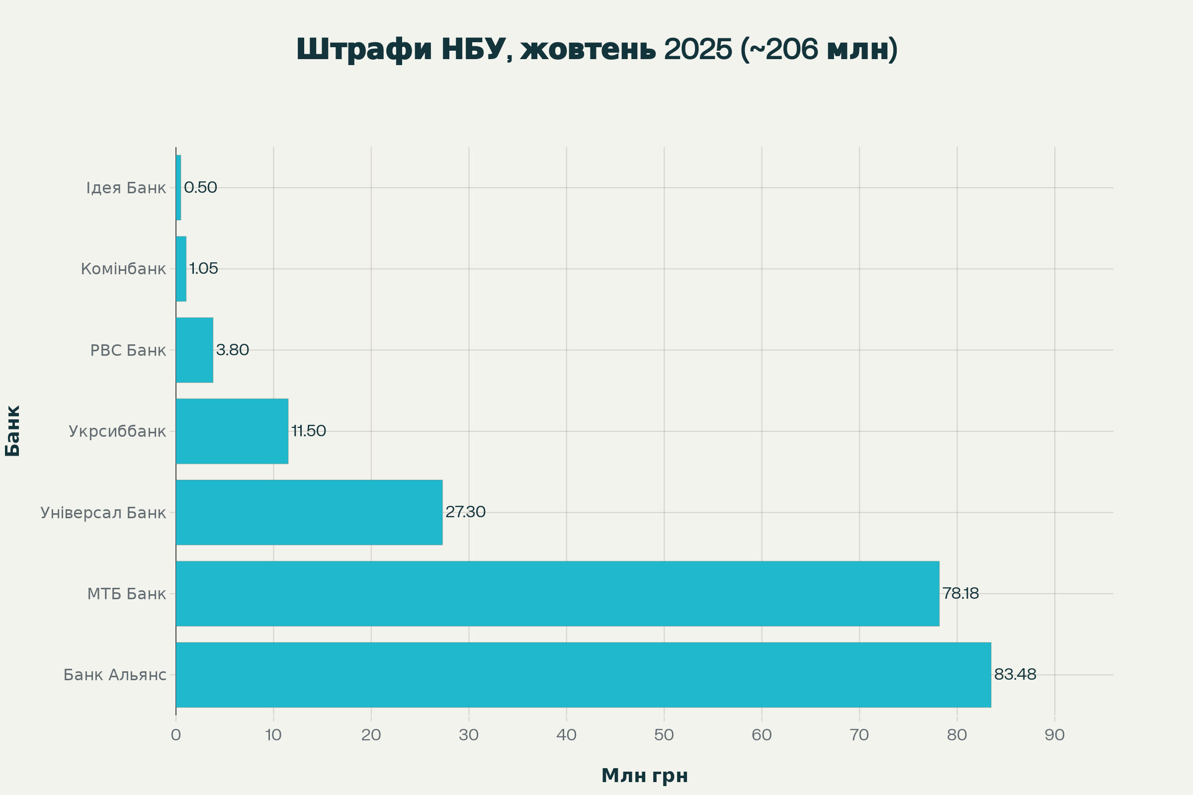 Близько 200 млн гривень штрафів за один місяць — це істотна сума, яка розповідає історію системних проблем у фінансовому секторі.