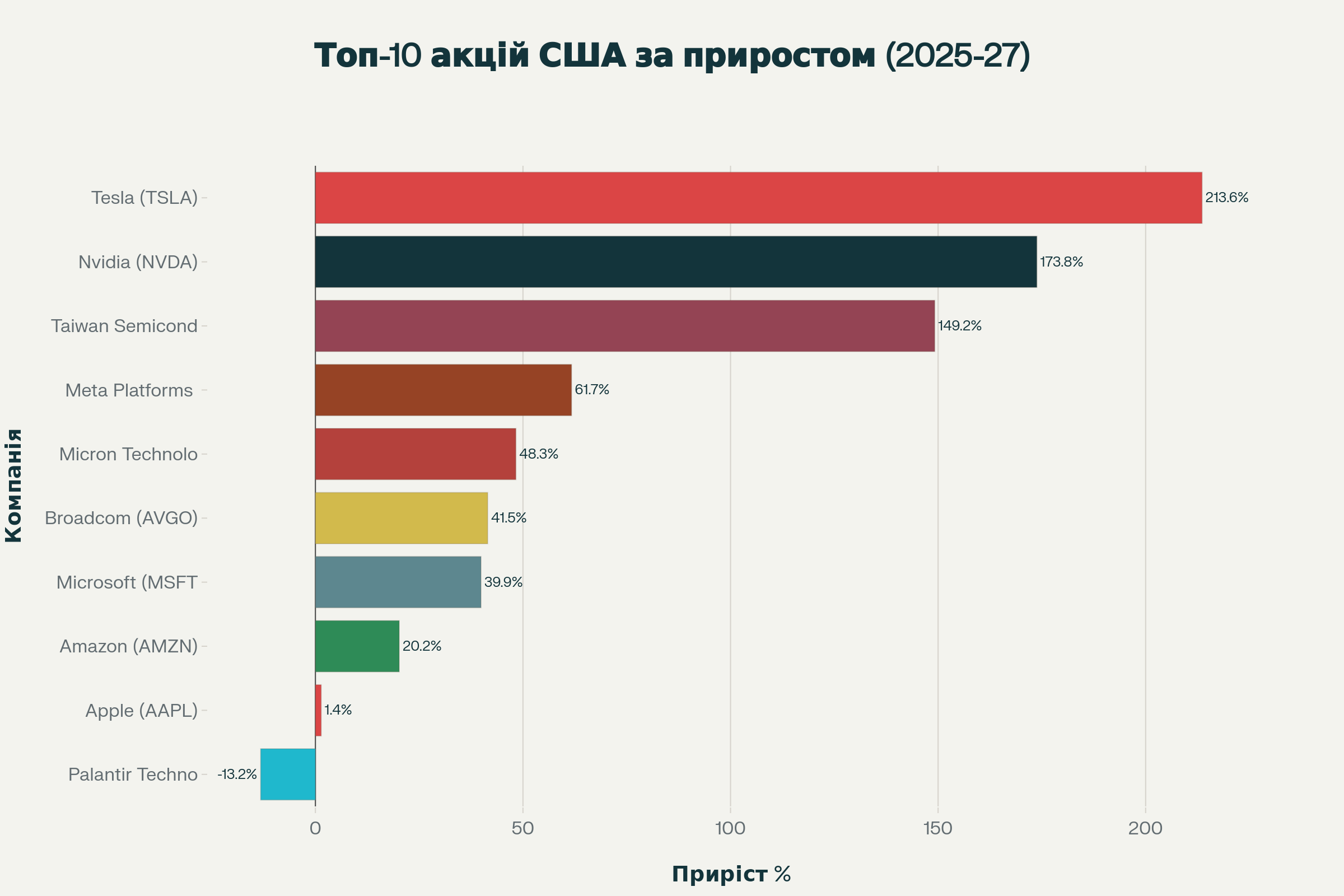 Прогноз щодо інвестування в акції США з 2-річним горизонтом (2025-2027): 10 компаній з найбільшим прогнозованим приростом вартості